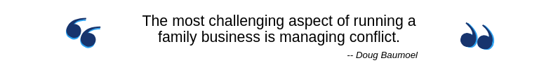 “Pure and simple, [conflict] is the core challenge for families that work or own [a business] together. A family that can manage conflict well has a good shot to get everything else right,” Doug says. “If they can’t manage conflict well, they get stuck—or worse. I think of family businesses like a building resting on a foundation made of stone. Each stone might be a ‘best practice,’ a policy, or a process that helps the business and its stakeholders in some fashion. The ability to manage conflict well is the mortar that holds it all together.”