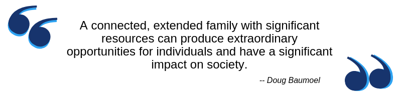 “When it works, it is an opportunity to create a valuable family legacy and for families to stay connected for generations,” says Doug Baumoel, founder and principal of Continuity Family Business Consulting. “A connected, extended family with significant resources can produce extraordinary opportunities for individuals and have a significant impact on society.”